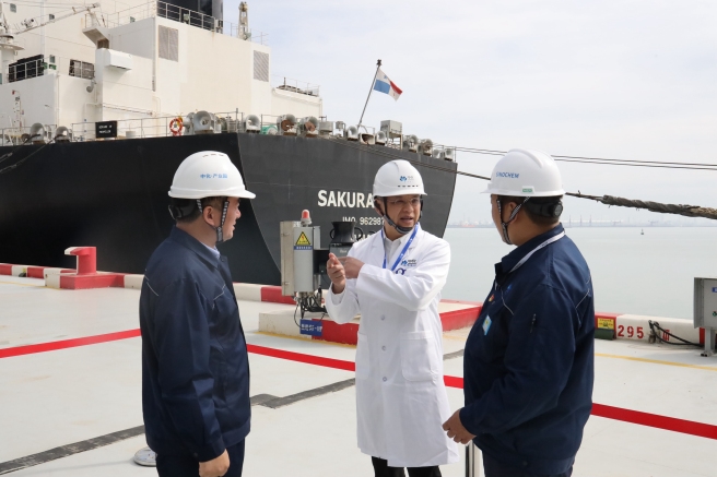 王舸一行調研連云港產業(yè)園碼頭、儲罐、應急救援中心,圣奧化學促進劑工程項目,江蘇瑞恒碳三一期項目,以及中藍連海微生物菌劑研發(fā)場所,要求切實做好安全管理,嚴格遵守操作紀律,不斷增強安全生產底線意識。