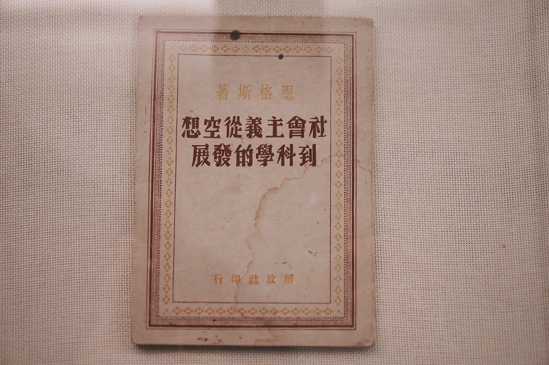 這本恩格斯著作《社會主義從空想到科學的發展》由解放社發行,所用紙張是抗日根據地和邊區自主生產的馬蘭紙。當時許多馬克思和恩格斯著作、毛澤東著作都是用馬蘭紙寫作和印刷的。當時,延安物資奇缺。1939年11月,邊區政府安排青年化學家華壽俊到陜甘寧邊區造紙廠工作,任務就是解決邊區新聞刊物、文件、教學書本等印刷用紙的難題。華壽俊經過調查發現,農作物秸稈纖維的強度太低,但陜北的樹木又少,造紙原材料匱乏。他在一次開荒勞動中,被一種草纏住了鋤頭,發現其纖維的韌性很強,旁邊的人說這叫馬蘭草。這種草作為造紙原料,不但成本低廉,而且取之不盡用之不竭。經過反復試制,馬蘭紙終于被成功造出,基本上滿足了邊區出版、辦公、學習和生活用紙。朱德《游南泥灣》一詩夸贊道:“農場牛羊肥,馬蘭造紙俏。”